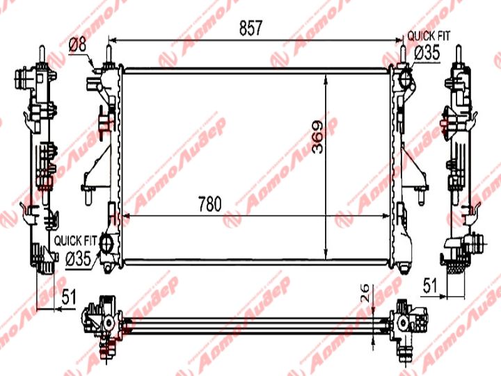 Радиатор охлаждения /AUTOLEADER для FIAT DUCATO, PEUGEOT BOXER, CITROEN JUMPER 2.2TD, 3.0 2006- /без крышки; PG-BOX06-1226 1340359080 LRC1680 1330.Q2